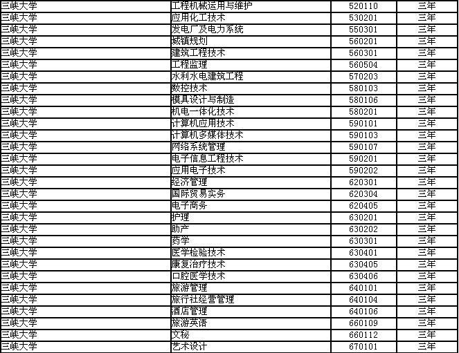 三峡大学2011年高职高专专业目录